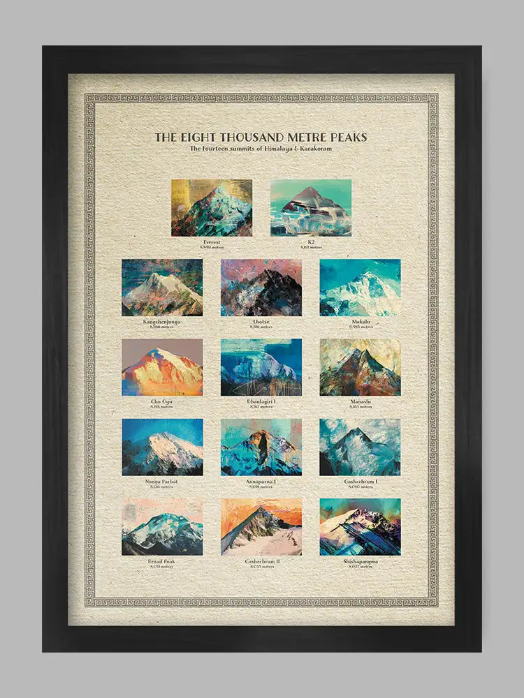 From £20.00From £20.00/OL111 Our Eight Thousand Metres Poster Print celebrates the 14 mountains in the World over 8,000 metres. This beautiful design captures each of the famous peaks...
