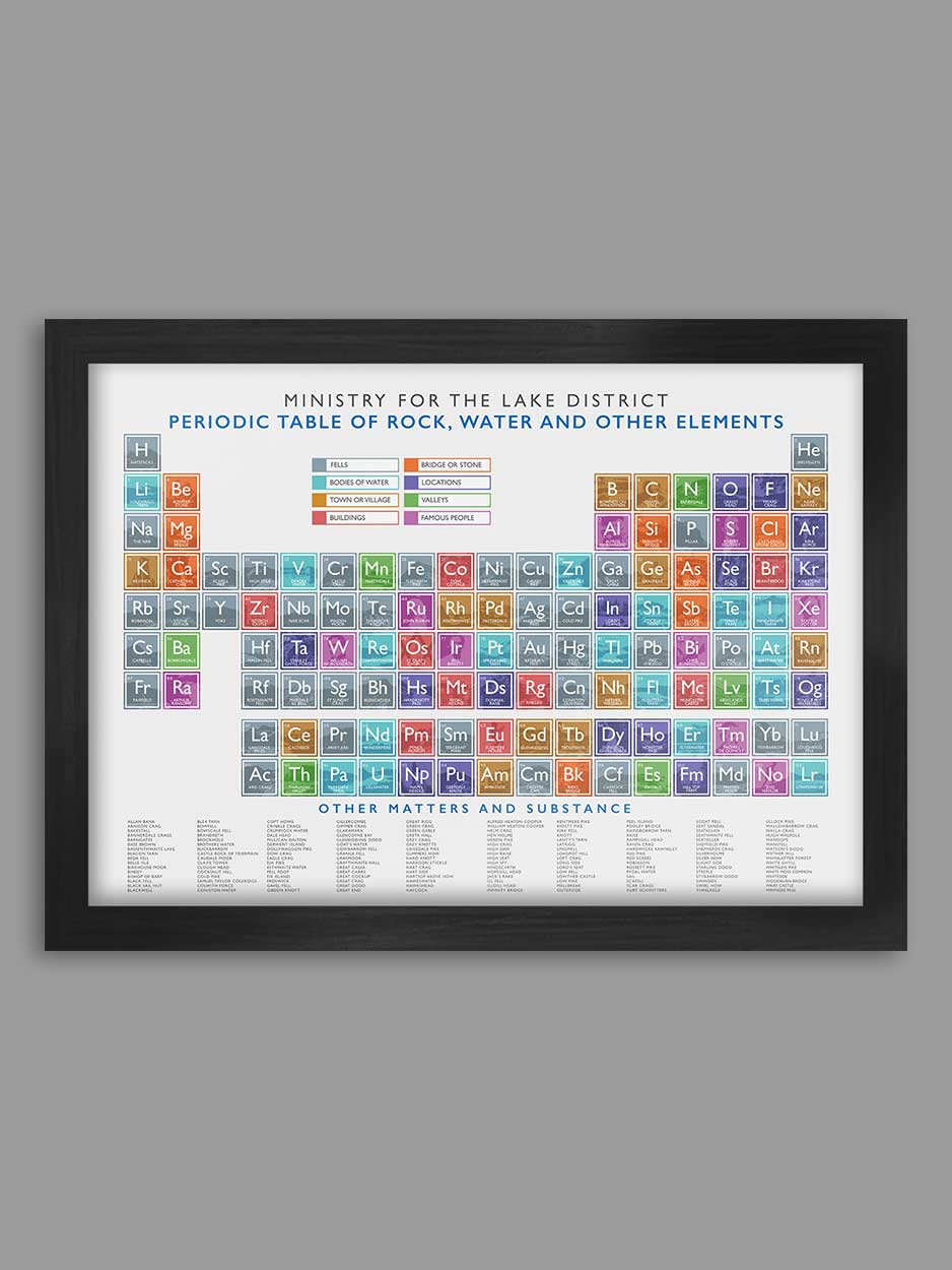 From £20.00From £20.00/LD041 A play on the Periodic Table in which the chemical elements and their symbols have been converted into famous Lake District landmarks. Categories include Fells, Waters,...