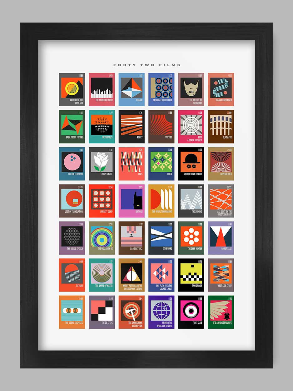 From £12.00From £12.00/SP126 Forty two Films - Poster Print. Classic films from all eras and genres given a modernist / minimalist styling. Available unframed, or framed in a...