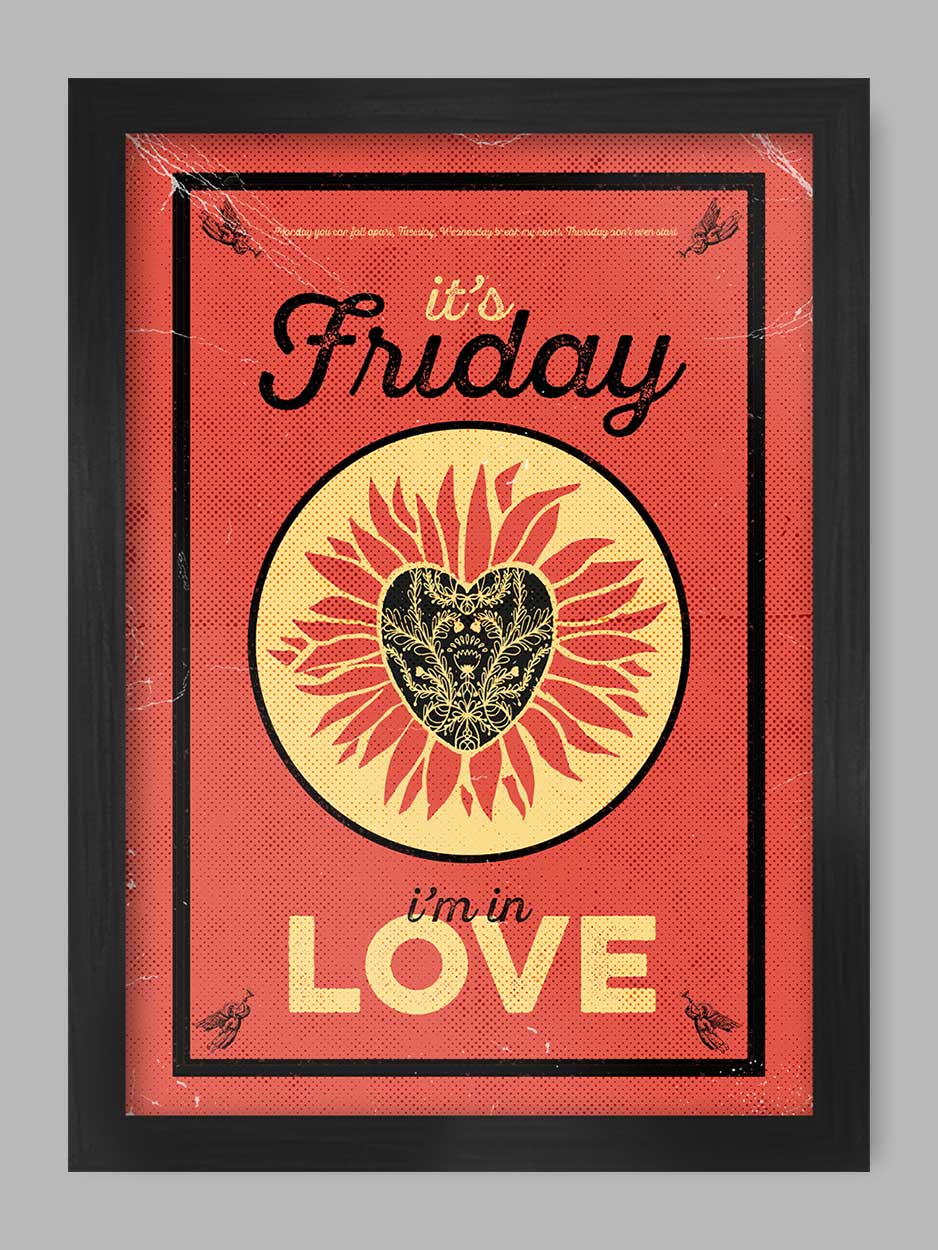 From £12.00From £12.00/MU098 Friday I'm in Love Music Print. From the song recorded by The Cure. NB - This poster has a degrading effect for a retro feel....