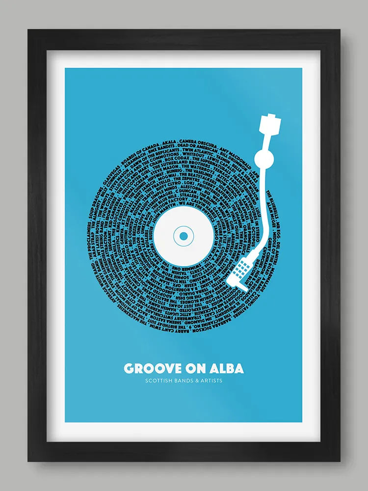 From £12.00From £12.00/MU108 Groove on Alba - Music Poster Print is styled on vinyl turntables and features a variety of scottish musicians and bands across genres and eras....