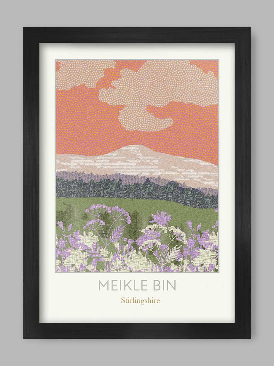 From £12.00From £12.00/OL088 Meikle Bin Poster Print. Situated in the Campsie fells. Meikle Bin Poster Print is available unframed, or framed in a 4cm black or white wooden...