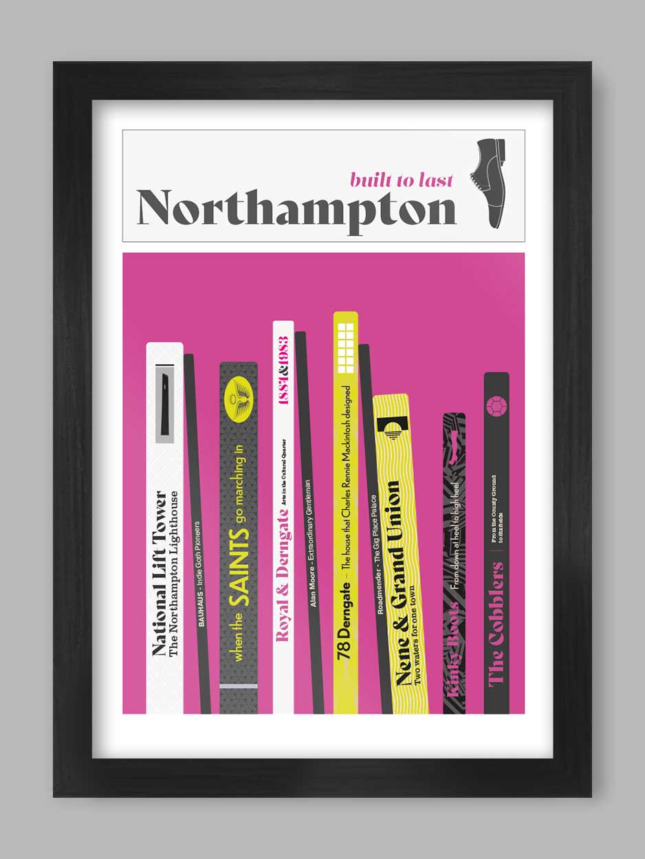 From £12.00From £12.00/OL095 Northampton - Built to Last Poster Print. A graphic design showing some of Northampton's classic locations, sports teams and personalities. Unframed Dimensions: A4 - 210mm...