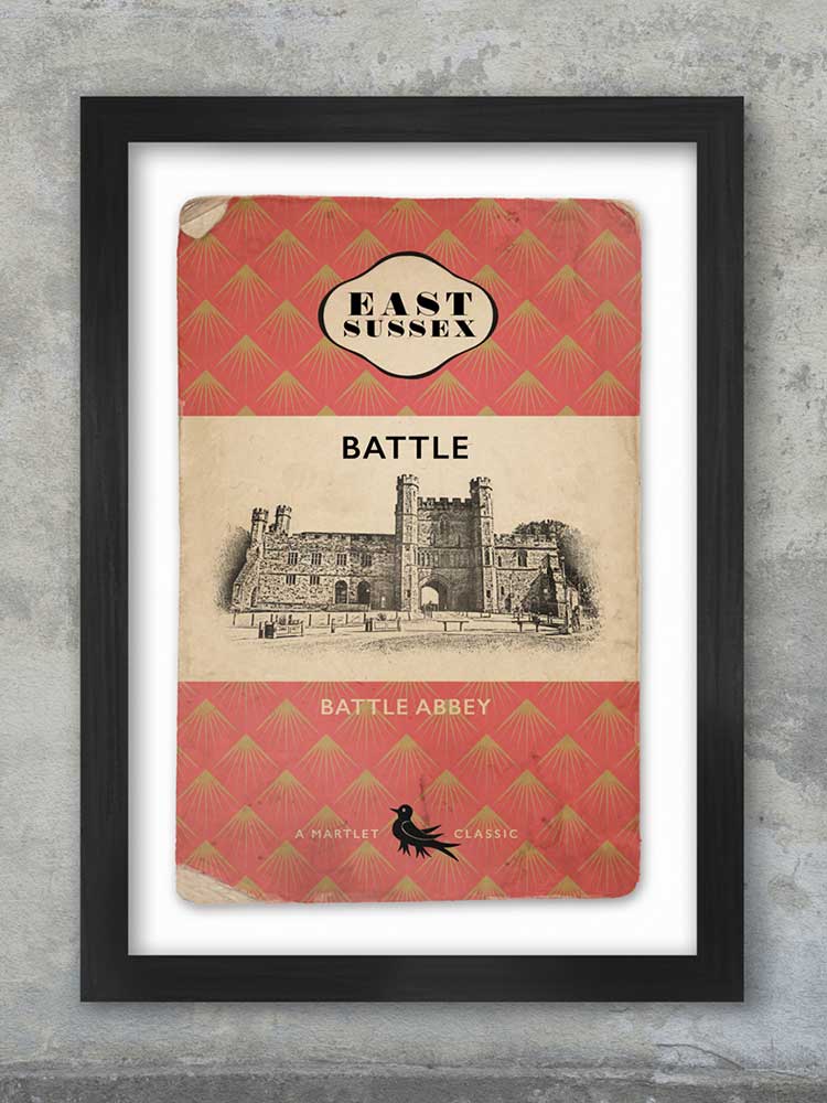 From £12.00From £12.00/OL039 The East Sussex town of Battle. Styled and inspired by the style of the old mid-century Penguin book covers. This 'Martlet Classic' takes its name...