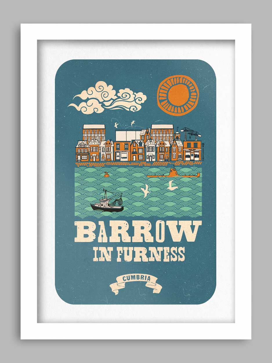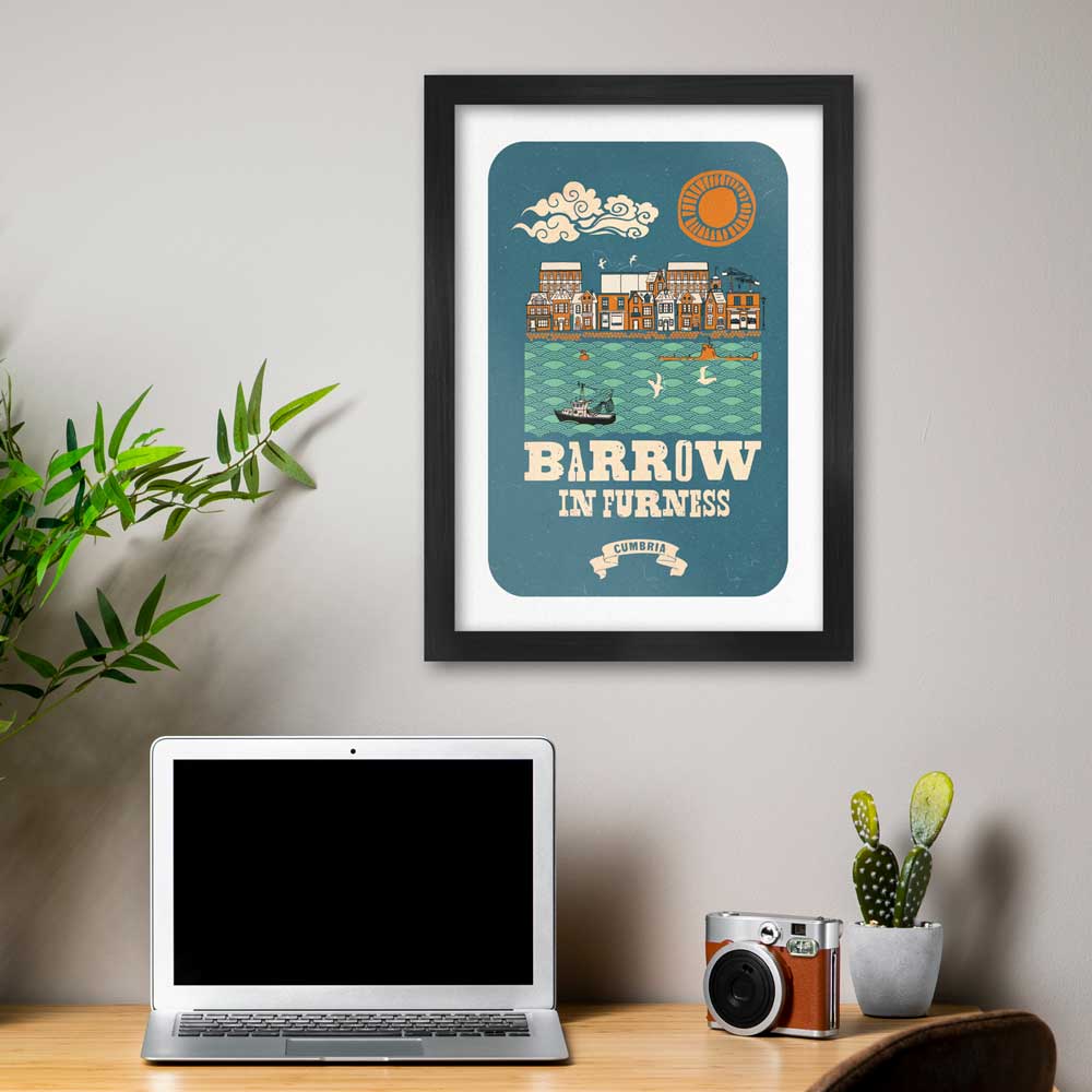 Barrovian - Barrow-in-Furness Poster print is available unframed, or framed in a 4cm black or white wooden frame with a plexiglass cover.