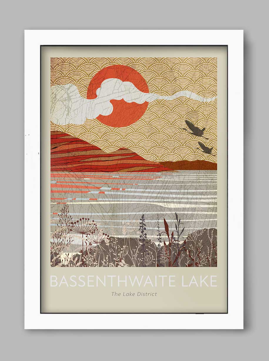 Our Bassenthwaite Lake poster print is presented in a series of gentle colours and patterns to give texture. It is the only body of water in the lake District actually called a 'Lake'!