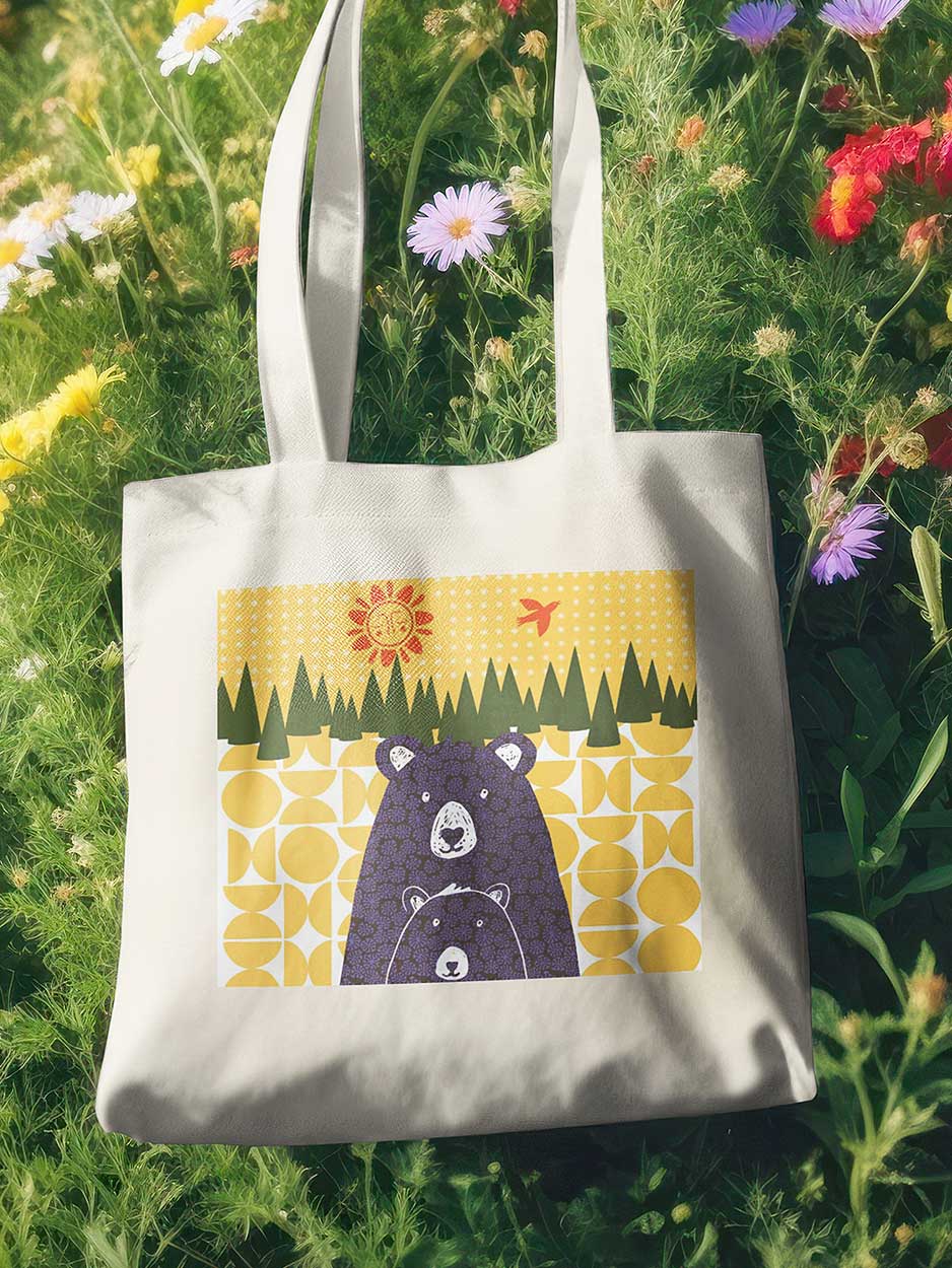 Part of our new range of designs, this bear design tote bag is perfect for carrying your books, shopping or gym kit. The colourful eye-catching design is inspired by mid-century style.