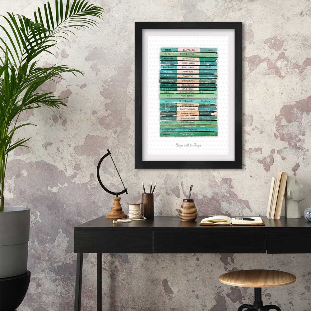Our Bhoys will be Bhoys Poster Print is available unframed, or framed in a 4cm black or white wooden frame with a plexiglass cover.