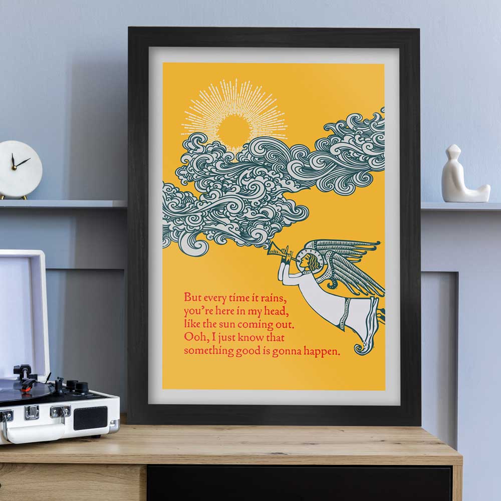 Cloudbusting Music Poster Print is available unframed, or framed in a 4cm black or white wooden frame with a plexiglass cover.