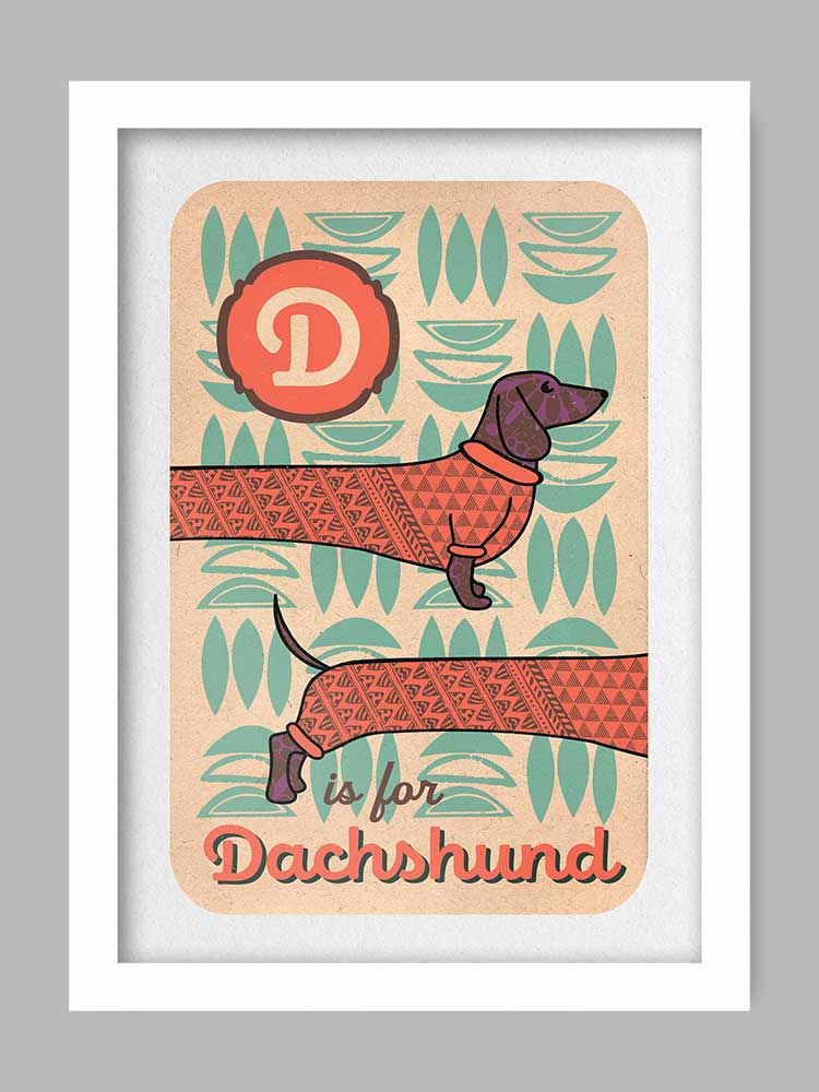 D is for Dachshund Poster Print. Badger Dog and Sausage Dog.