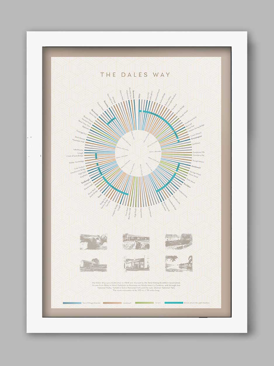 Our Dales Way Poster Print celebrates this iconic walk from Ilkley to Bowness-on-Windermere. The Dales Way Poster covers the route by kilometres and includes places and landmarks, as well as showing where rivers hug the route. Ideal for lovers of walking and hiking.