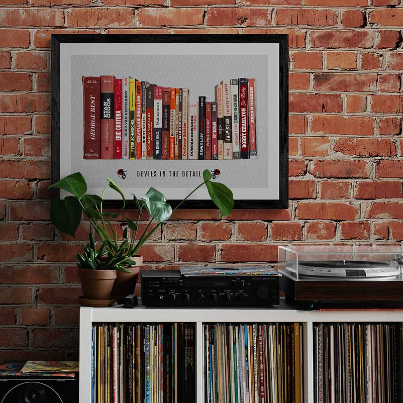 Our Devils in the Detail Poster Print is available unframed, or framed in a 4cm black or white wooden frame with a plexiglass cover.