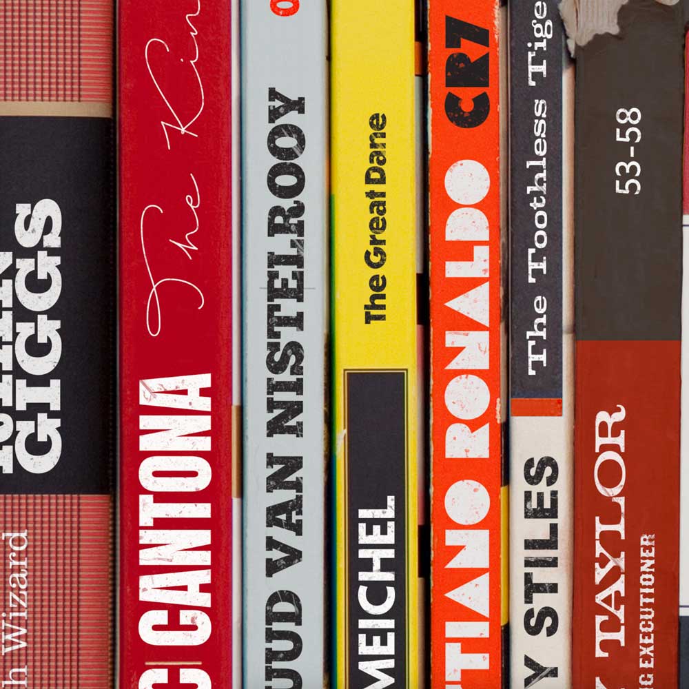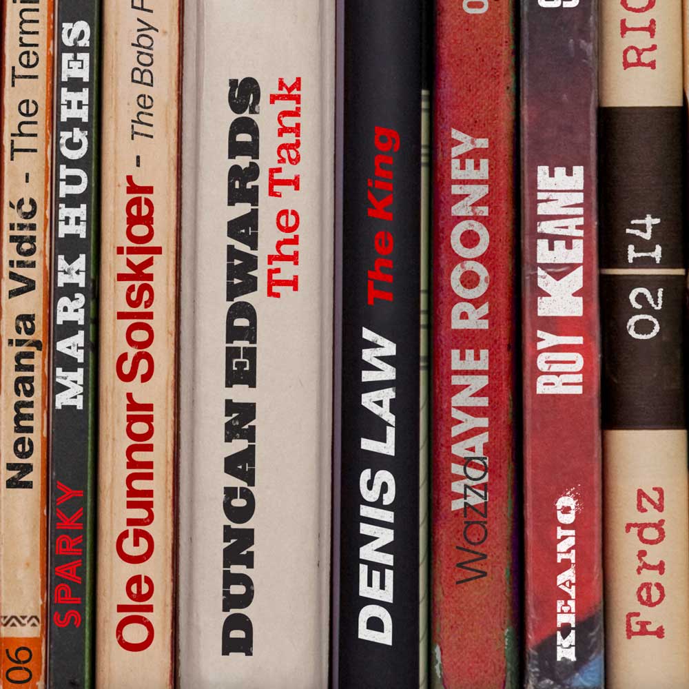 Devils in the Detail - Manchester United poster print celebrates some of the great names in the club's history together with their nickname and the years they played for the club. Styled on the classic mid=century penguin book designs.