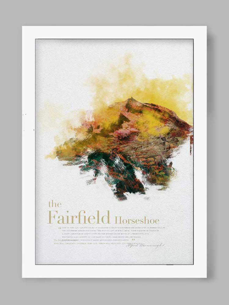 Our Fairfield Horseshoe Poster Print incorporates words by Alfred Wainwright and is designed by us here at the Northern Line. The Fairfield Horseshoe is a popular walk in the Lake District National Park, taking in many iconic Wainwright fells.