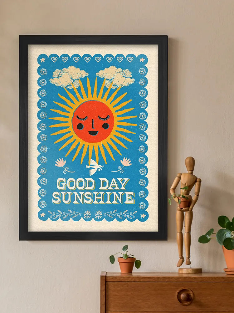 Good Day Sunshine - Music Poster Print is available unframed, or framed in a 4cm black or white wooden frame with a plexiglass cover.