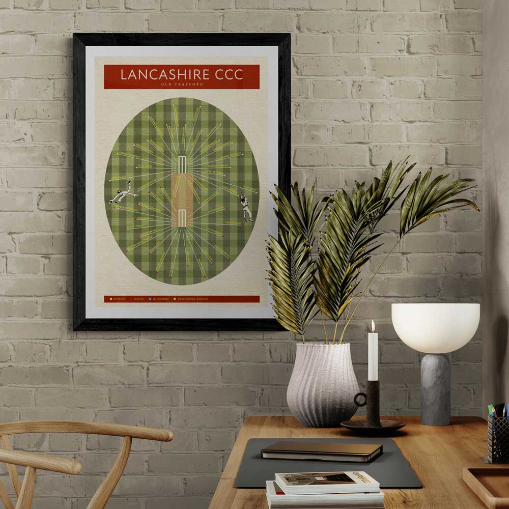 Lancashire CCC - Cricket Poster Print is available unframed, or framed in a 4cm black or white wooden frame with a plexiglass cover.