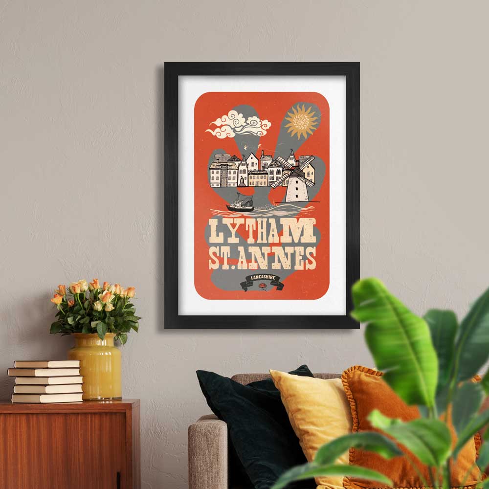 Lytham - Poster Print - Poster Print. Retro style design celebrating the beautiful coastal town of Lytham St.Annes