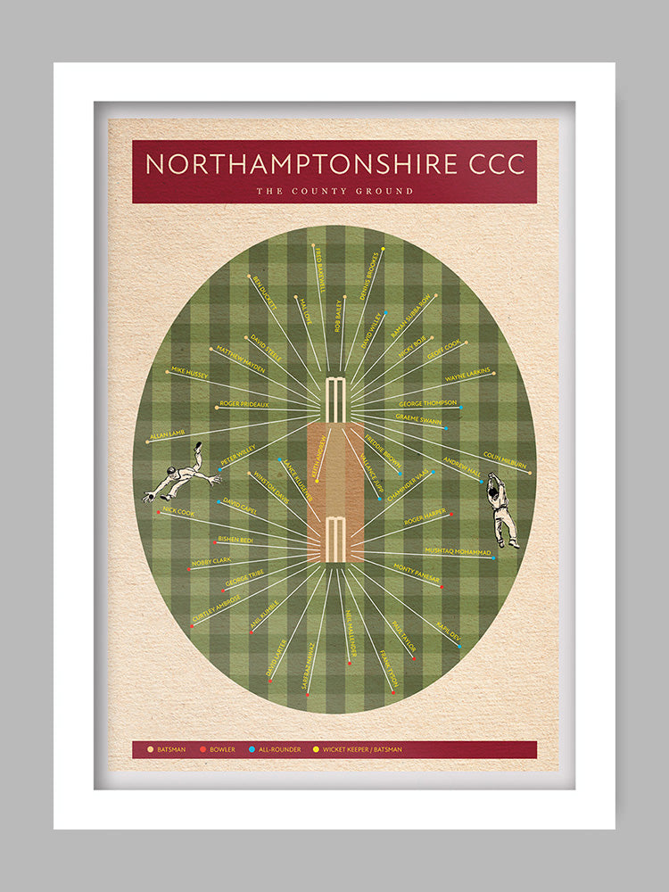 Northants CCC - poster print is available unframed, or framed in a 4cm black or white wooden frame with a plexiglass cover.