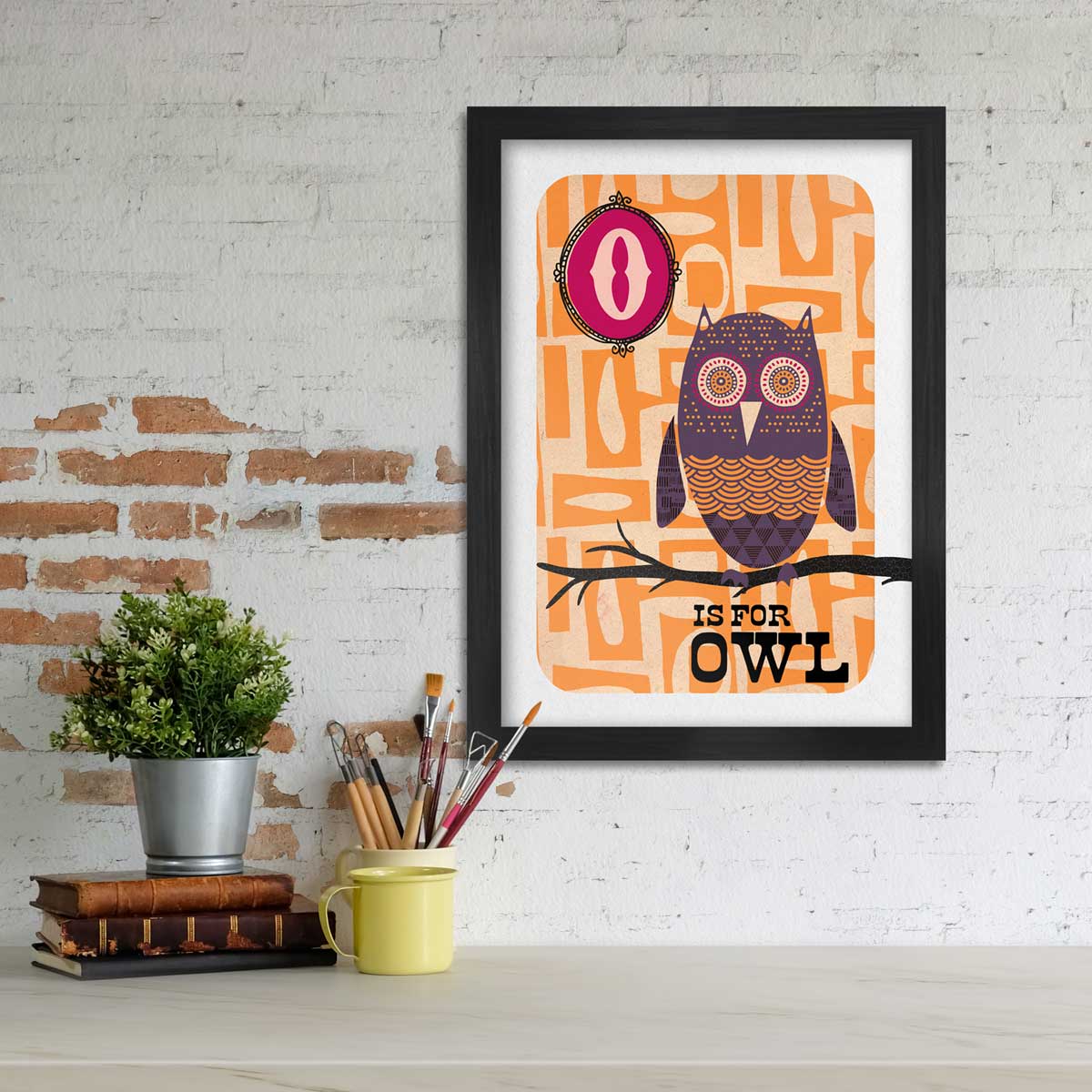 O is for Owl Poster Print. Our nocturnal feathered friend.