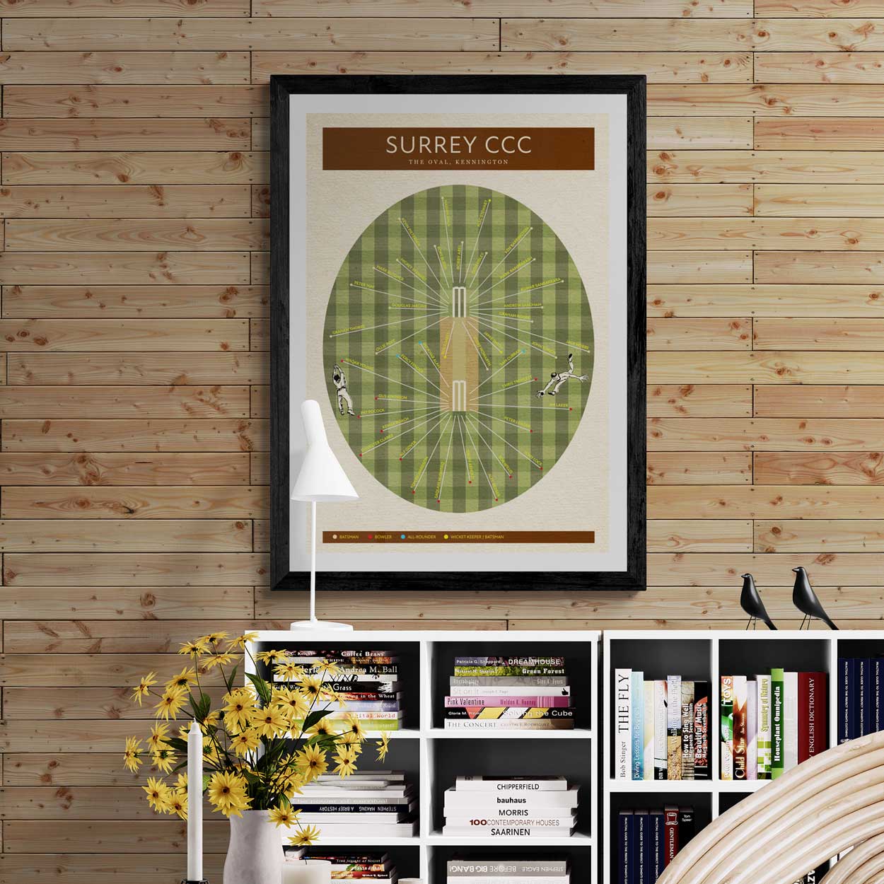 Our Surrey CCC - Cricket Poster Print is available unframed, or framed in a 4cm black or white wooden frame with a plexiglass cover.