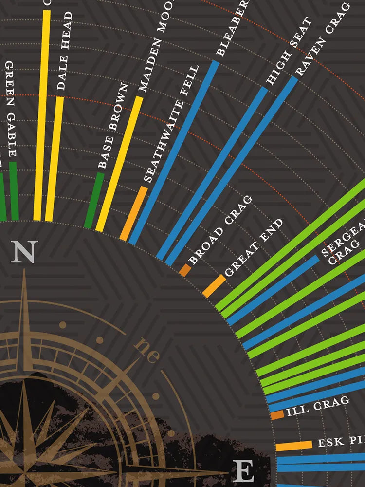Wainwright's View From Scafell Pike - Lake District Poster Print. Records the original sketch produced by Alfred Wainwright in his book on the Southern fells, first published in 1960.